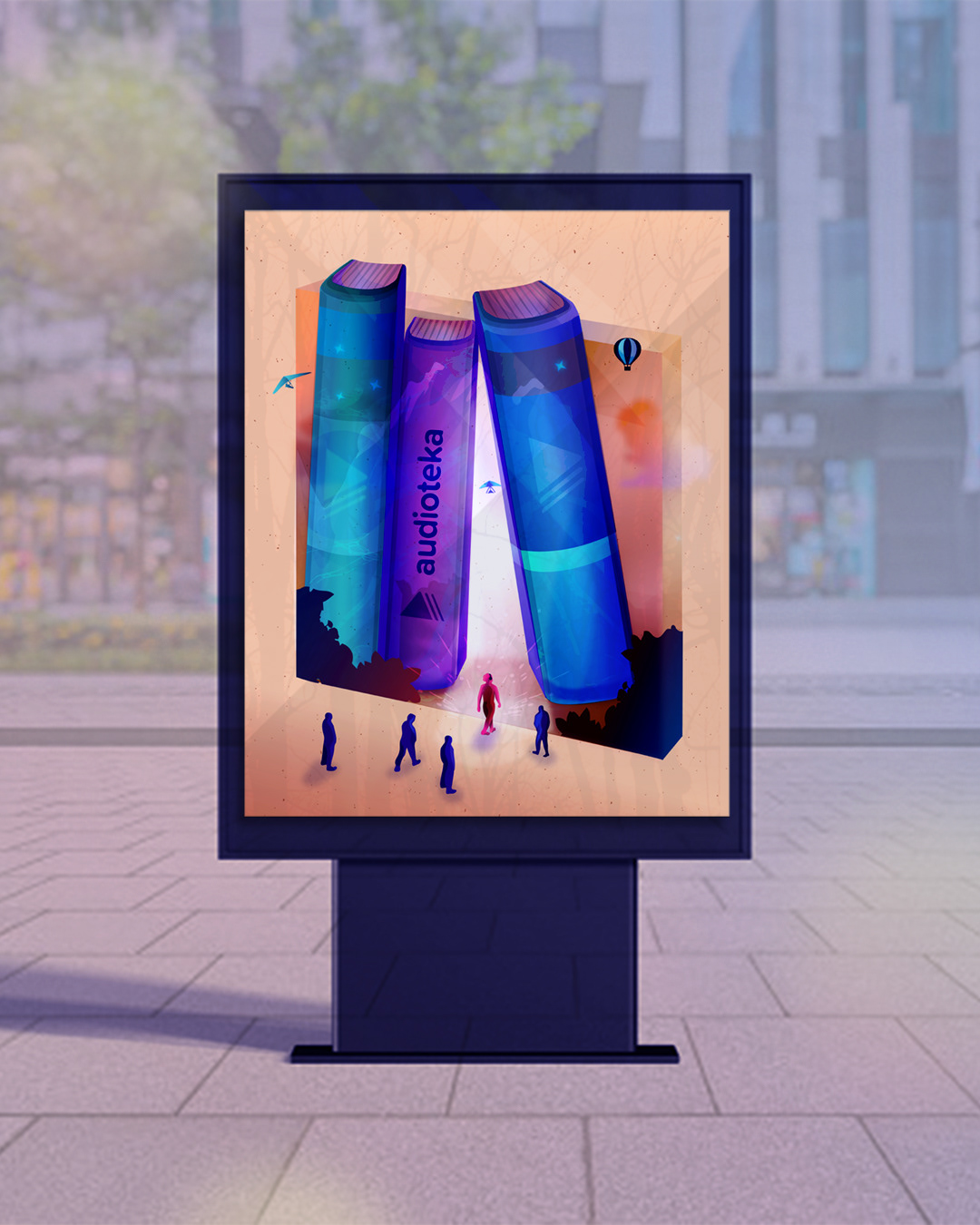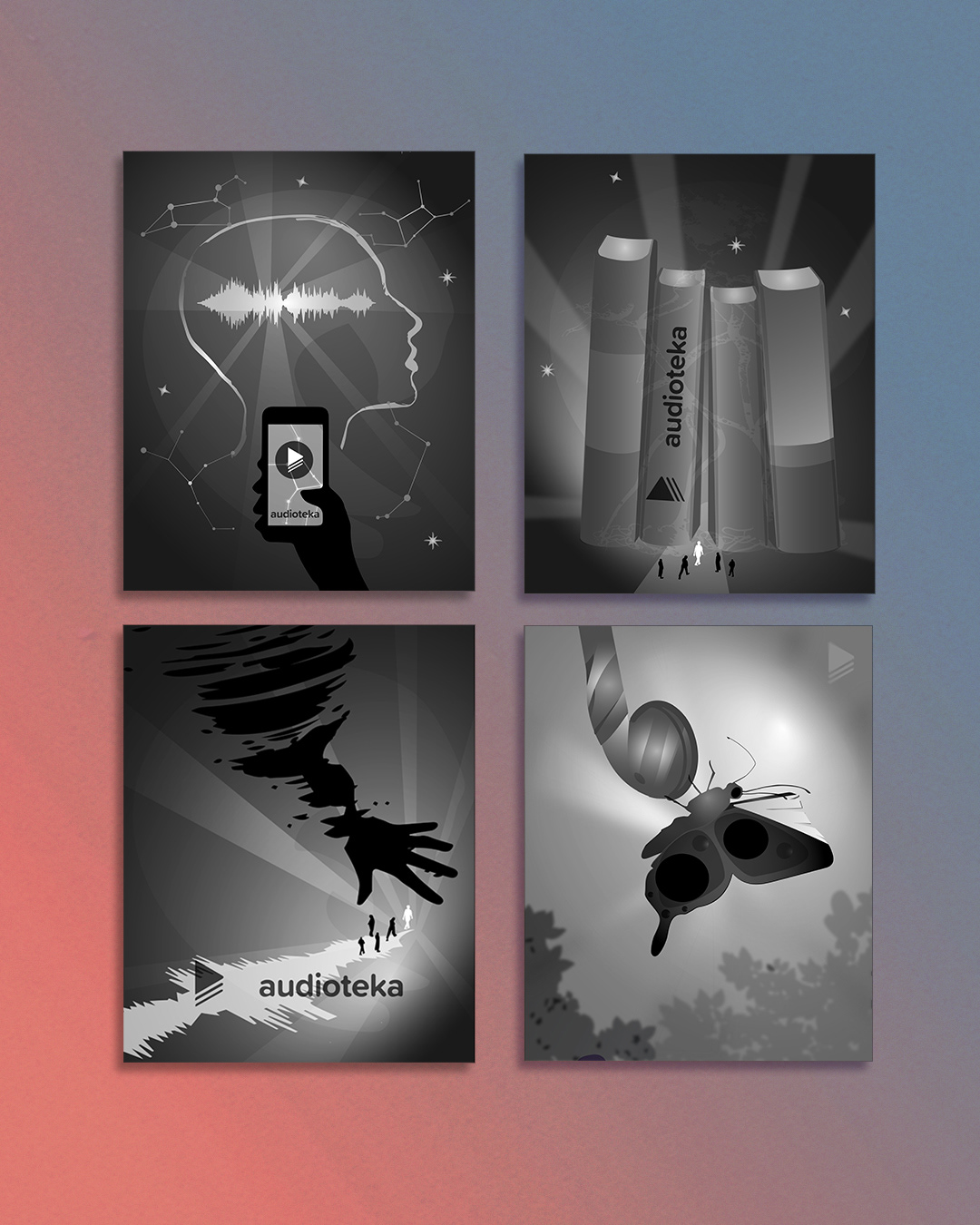 It's a speculative commercial illustration project for the Audioteka brand - a digital library of audiobooks that also has an inspiring podcast called "PIN" (it's a shortcut of Lithuanian sentence - "Let's try again").