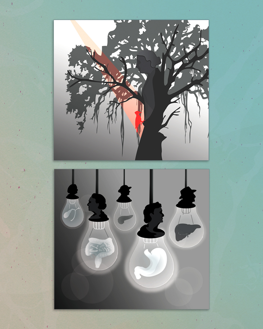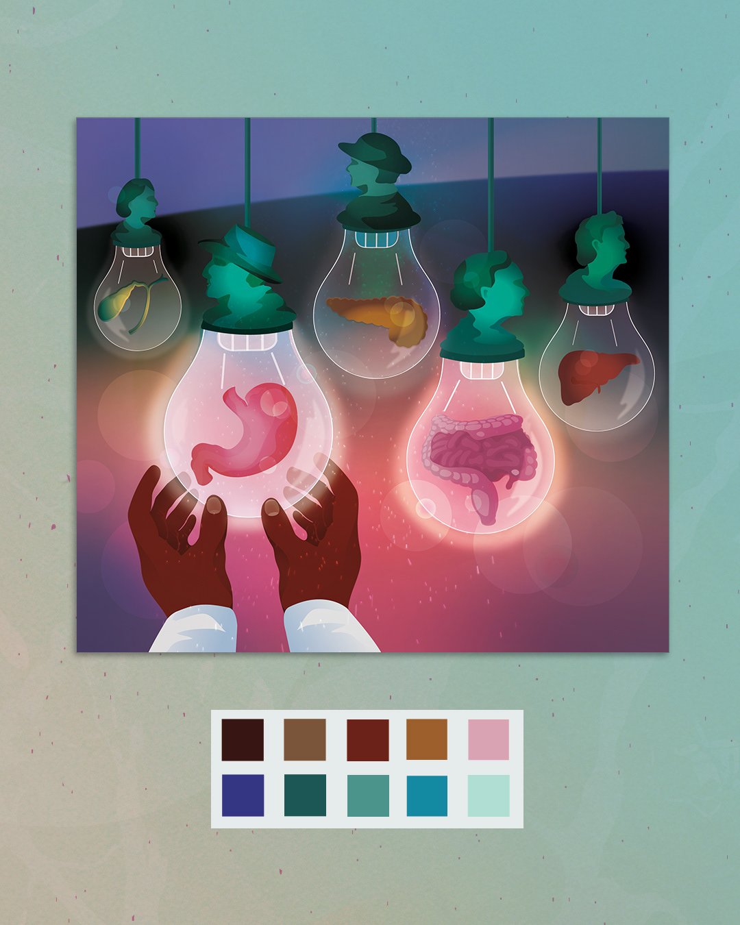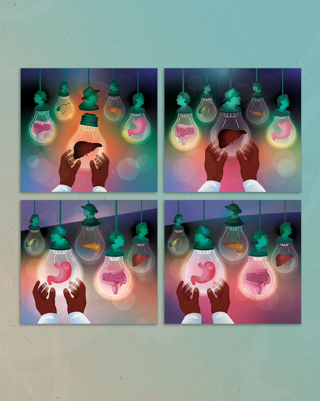 💡 Each glowing bulb contains the organs featured in the research, symbolizing how science illuminates the hidden processes of the body.
